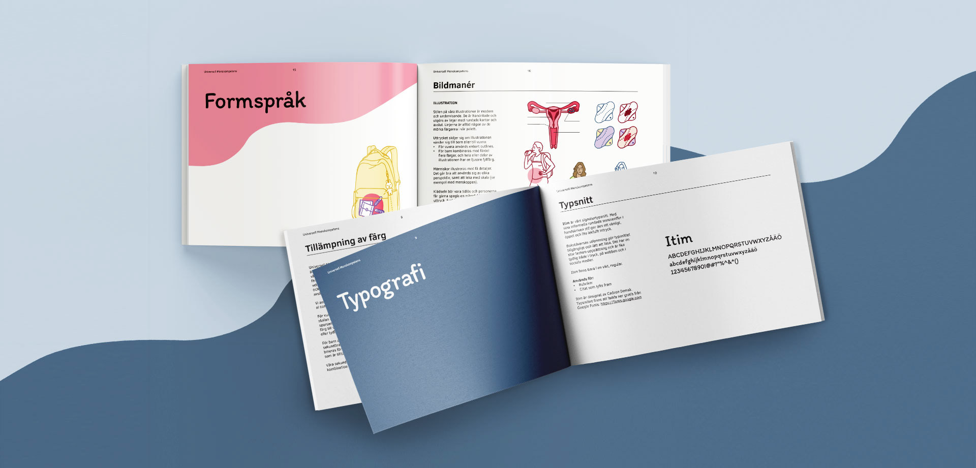 Through our strategy workshop, I figured out that important keywords were empowering, reassuring and knowledgeable, and that they were aiming for the impression of an older sister you can rely on. One challenge with this commission was that Universell Menskompetens are making educational materials for both children and adults. It is important to appeal to both of these quite divided target groups, and for them to easily recognise which educational materials that are specifically made for them.