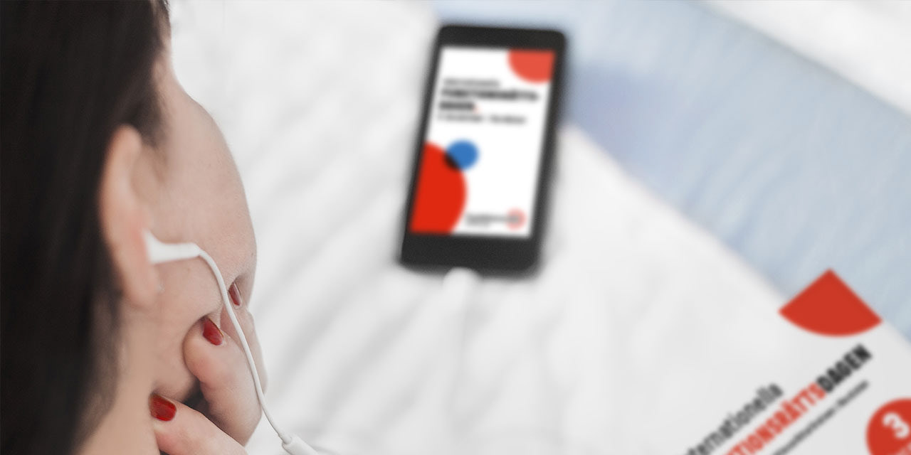 To market the day, I designed a leaflet for print and as a digital accessible pdf, images for social media and digital ads. As preparations for the exhibition, I also made a 8 meter long banner, a template for the volunteers’ vests, and a double gate leaflet for the program. The leaflet was extra fun to make, since we decided to have punch out holes as a special feature. The holes match the circle theme and made the leaflet easier to unfold. On the front side, there is a QR-code leading to a digital version of the program, as an option to be read by a speech synthesis.